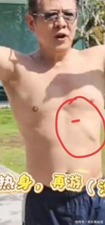 有网友看到李连杰左侧肋骨凸起,认为那里是个疤痕。