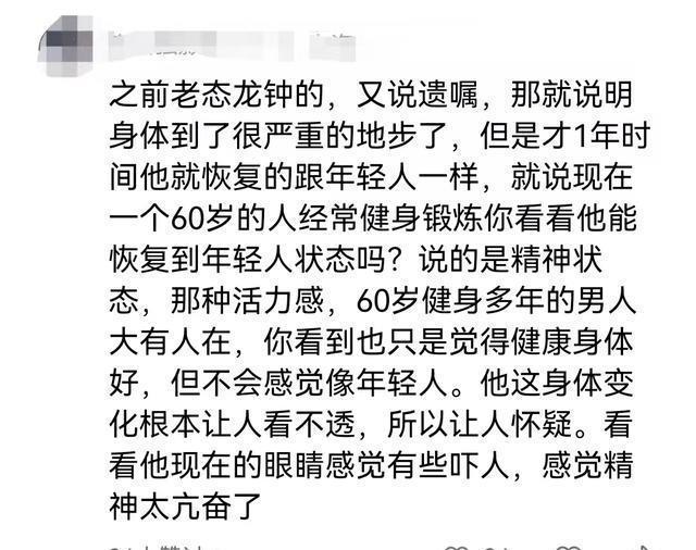 有网友说之前又是立遗嘱又是说自己身体很糟糕的,现在才1年恢复的和年轻人一样,身心变化太明显。